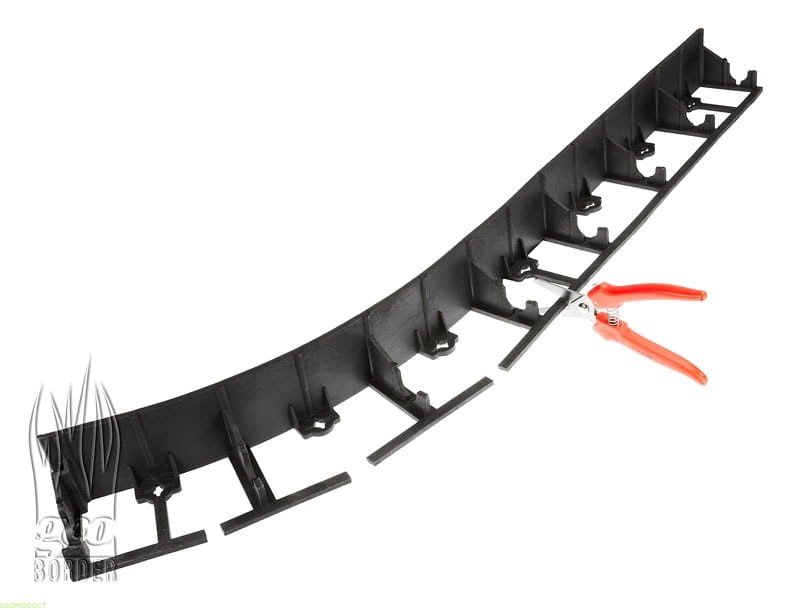 Obrzeża trawnikowe wykonane są z tworzywa uzyskanego w 100% z recyklingu. Dzięki temu są elastyczne co umożliwia kształtowanie zarówno prostych linii jak i łuków i kątów.