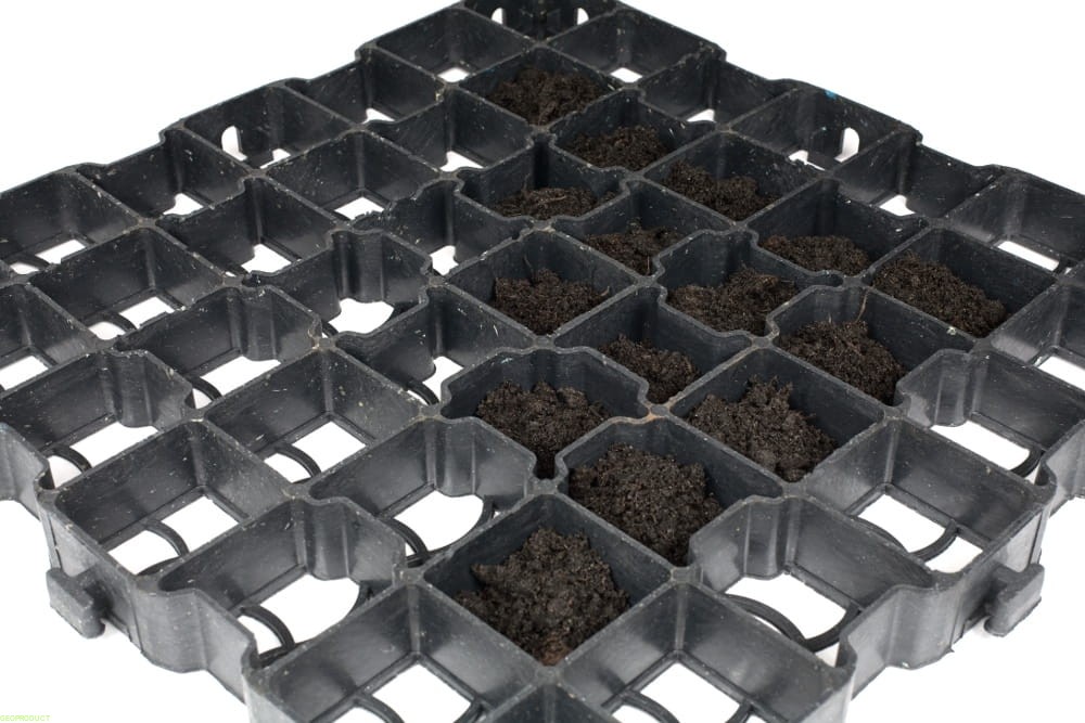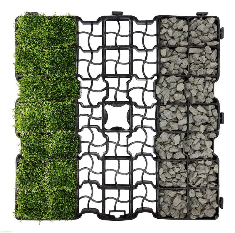 Możliwość zastosowania trawy i kruszywa pozwala na wkomponowanie się kratki w każdy rodzaj zagospodarowania przestrzennego.